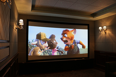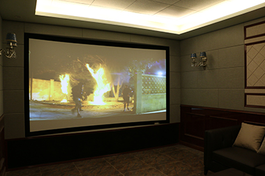 業(yè)主對(duì)影音需求很高,所以在地下室有一個(gè)專(zhuān)門(mén)的房間作為私人影院。我們采用了美國(guó)James 63FX入墻式揚(yáng)聲器+1只James EMB1000低音炮組成5.1.4環(huán)繞音效,Marantz功放搭配威動(dòng)在線影庫(kù),營(yíng)造了逼真的聲效,讓業(yè)主感受到身臨其境的影音效果,我們綜合業(yè)主對(duì)視頻畫(huà)面品質(zhì)的要求和預(yù)算,推薦使用了Espon TZ1000配合133寸JK透聲幕布。