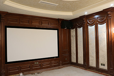 從前期的施工就進(jìn)行了專業(yè)的聲學(xué)設(shè)計(jì):聲場測試、聲學(xué)處理、設(shè)備定位的精確測算、吸音與擴(kuò)散的專業(yè)布局,觀影視角的分析規(guī)劃,多方面的聲學(xué)細(xì)節(jié)考慮,都是為了做出完美專業(yè)的視聽效果。搭配control4智能中控系統(tǒng),智能燈光控制系統(tǒng),擺脫繁雜的遙控器、操作復(fù)雜、不會操作的帶來的使用頻率低,器材的浪費(fèi)。